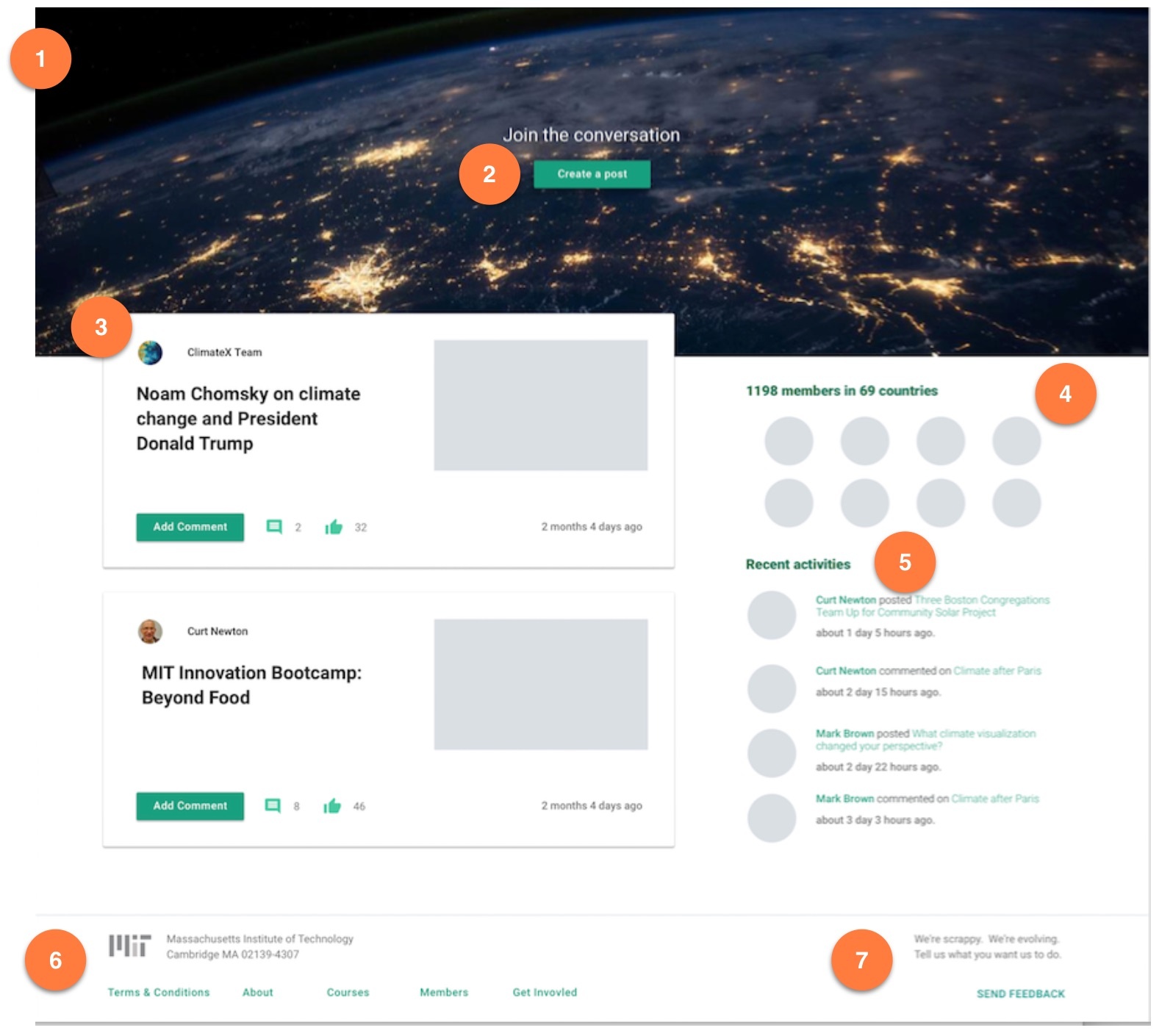 - Recent Activities page uses Notifications feed template, but simply lists all activities – new comments, new posts/videos/podcasts.