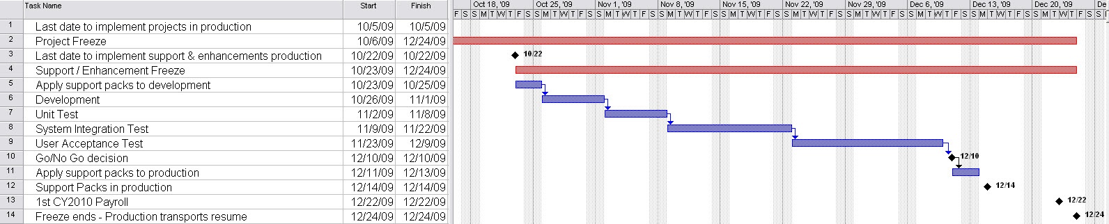 - 10/22/2009 - Last date to implement support & enhancement changes until freeze ends on 12/24/2009