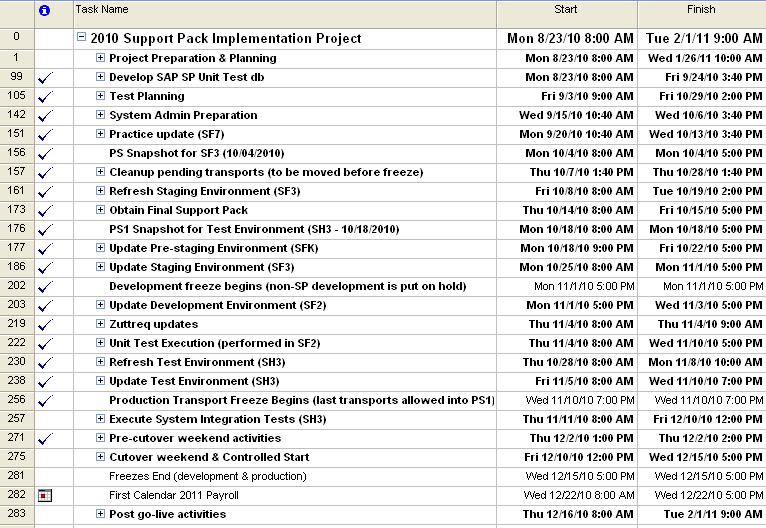 - 11/09/2010 - Last date to implement support & enhancement changes until freeze ends on 12/15/2010